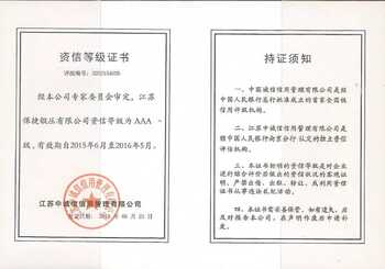 江蘇保捷鍛壓有限公司資信等級為AAA級